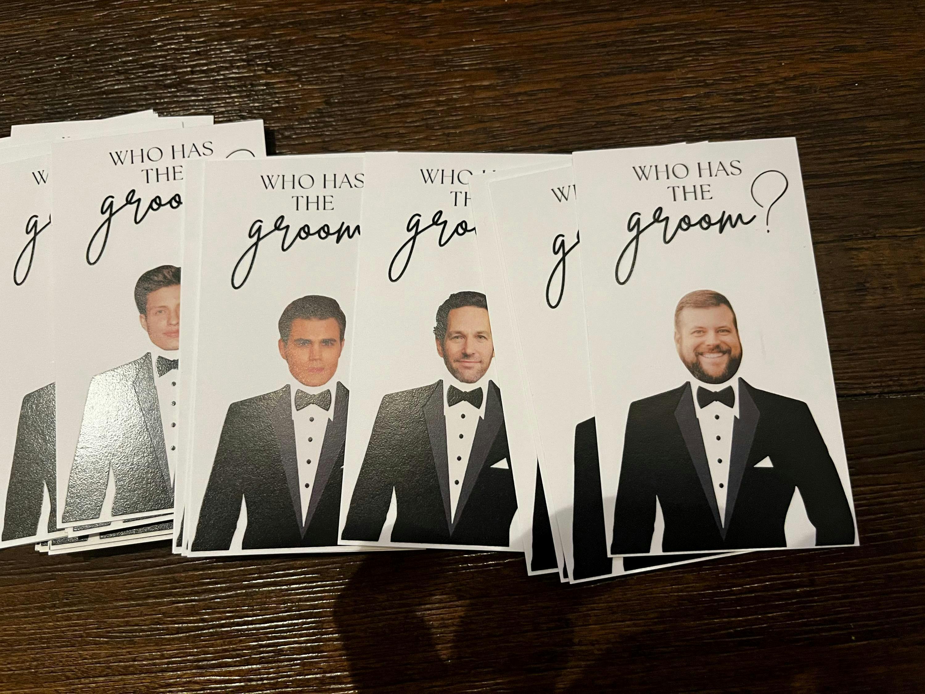 •The non-winner cards will have celebrity faces on them. Whoever has the groom card(s) wins a prize!