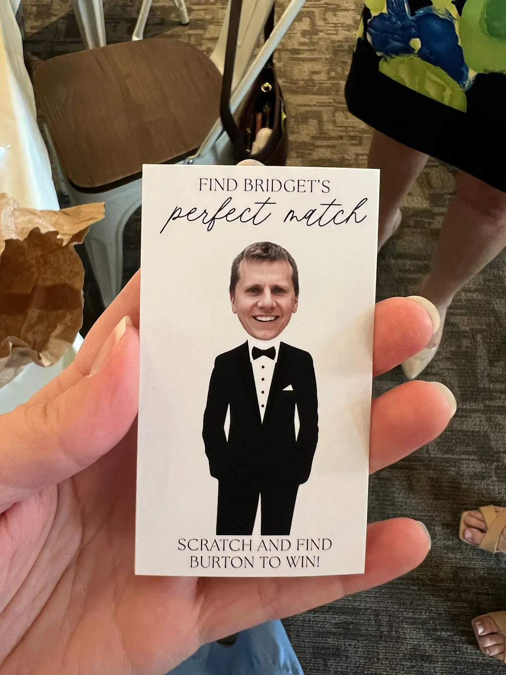 •The non-winner cards will have celebrity faces on them. Whoever has the groom card(s) wins a prize!